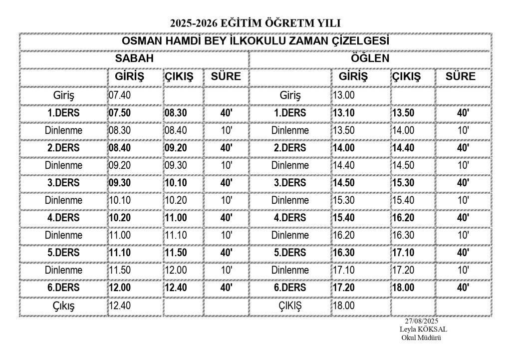 ZAMAN ÇİZELGESİ
